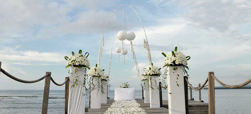 Their wedding package includes a 2-night stay at the Deluxe Private Pool Villa, full venue decoration, romantic dinner, and a couple’s spa session. You’ll also get a professional photographer for 2 hours, round-trip airport transfer, and a wedding cake. Packages start from IDR 36.3 million nett.